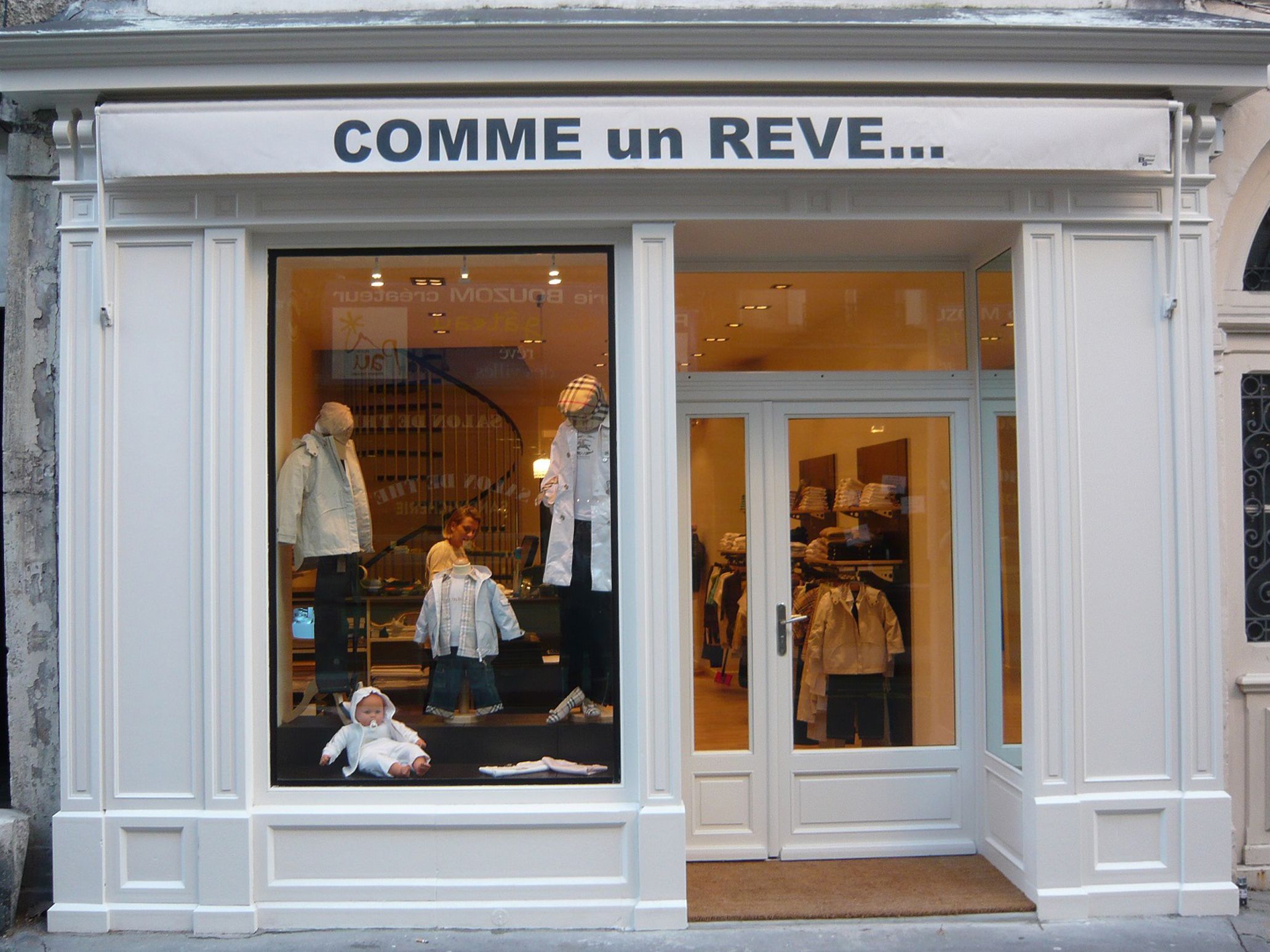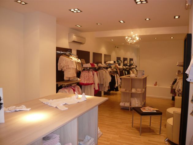 Objectif : Rénover une boutique de vêtements pour enfant en rez-de-chaussée qui était à l'origine une réserve. La façade a été modifiée afin de respecter les normes de sécurité incendie et a été refaite tout en conservant l'esprit initial.