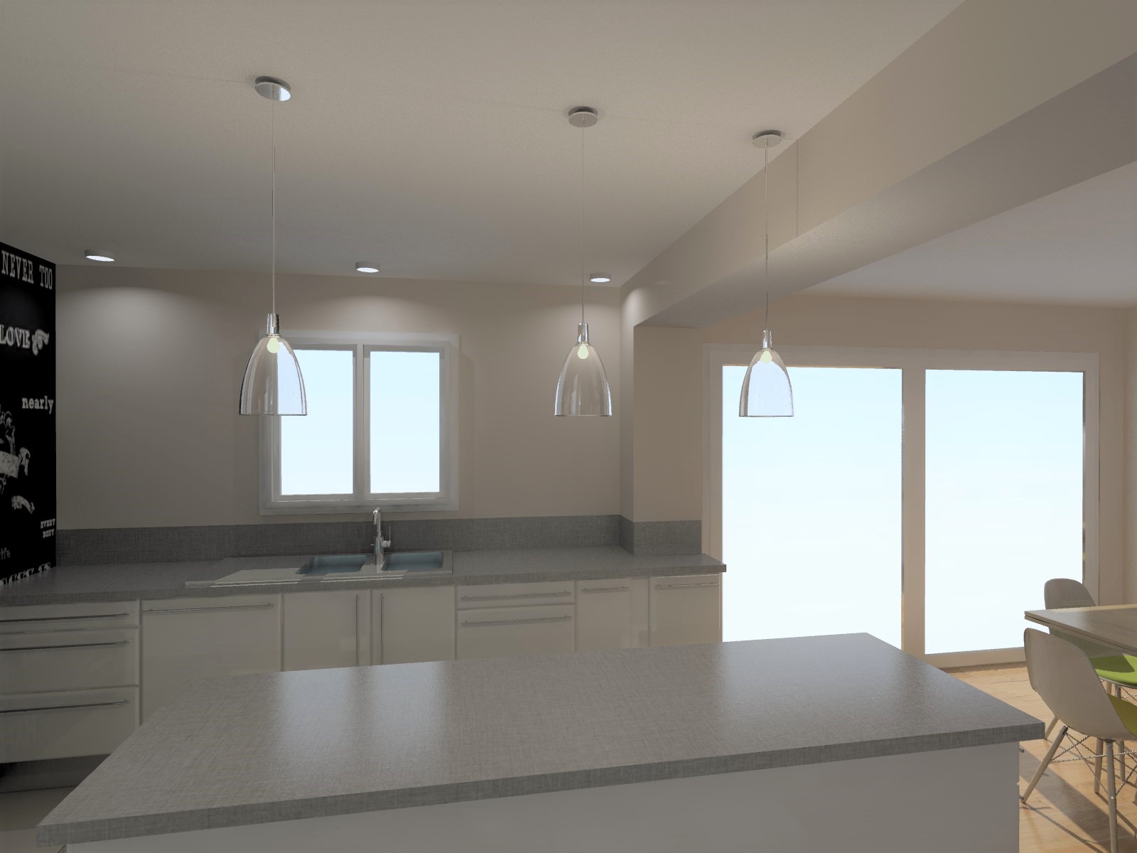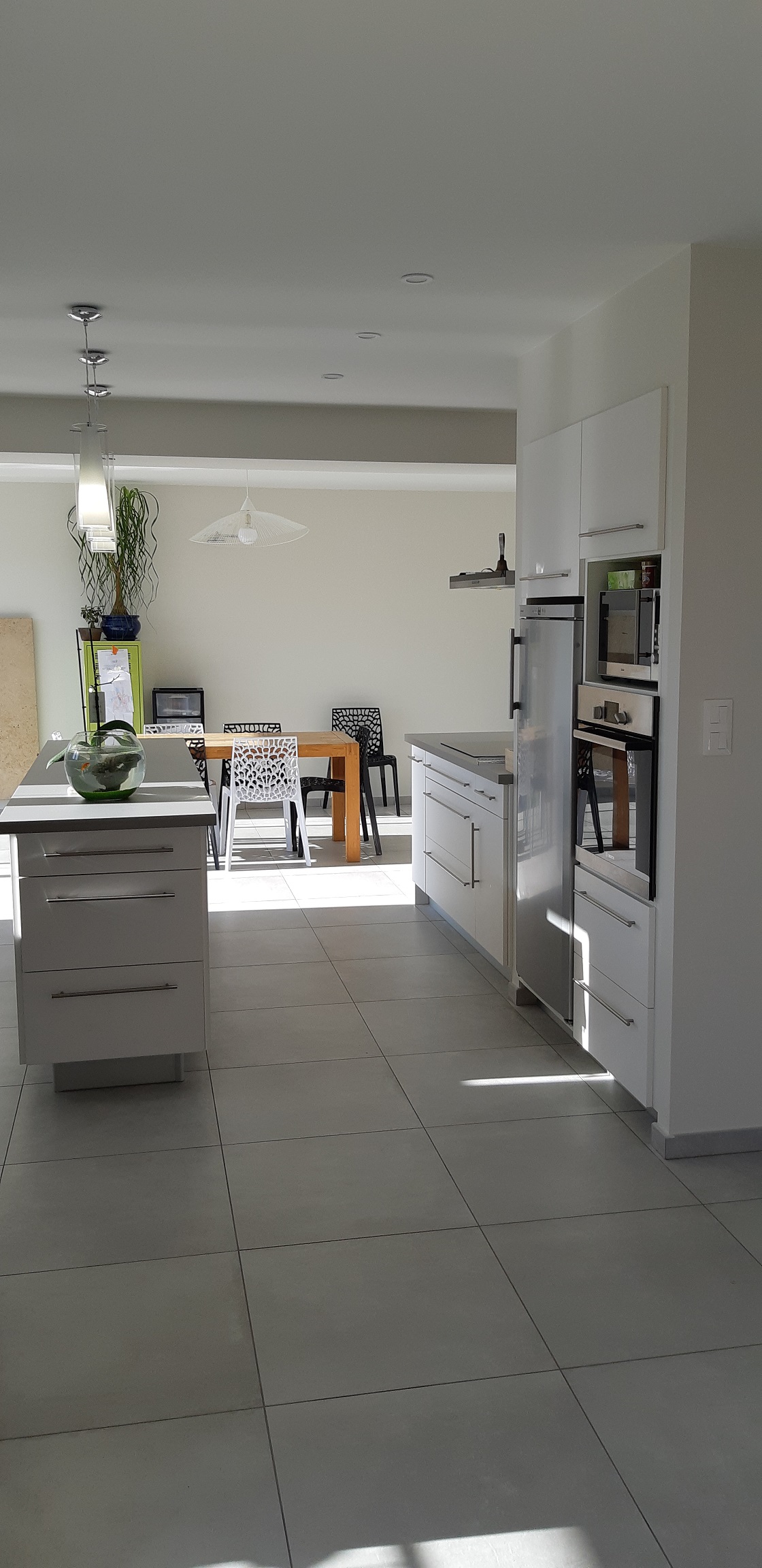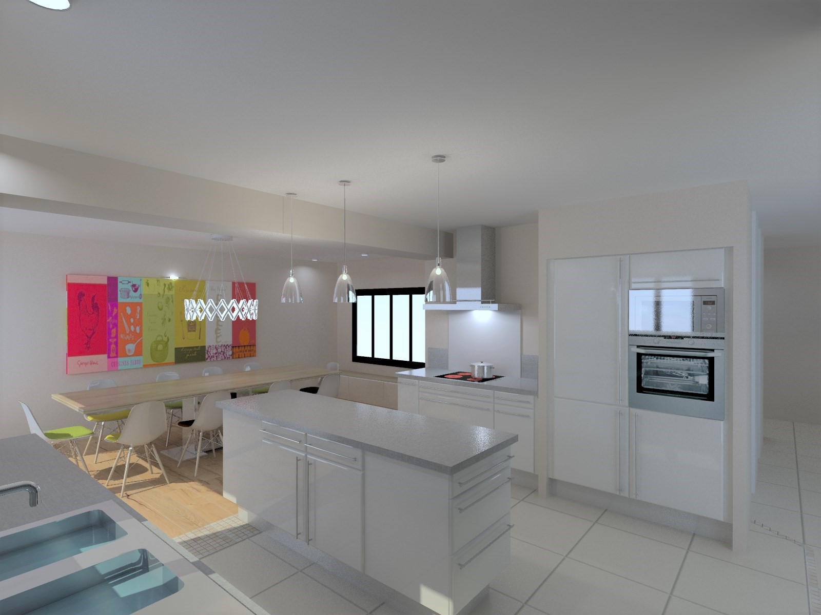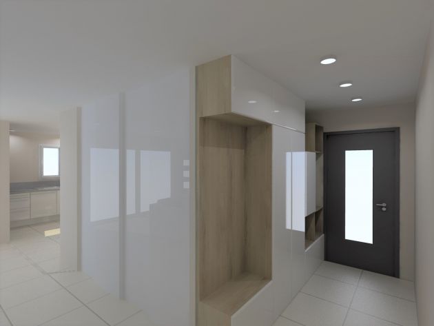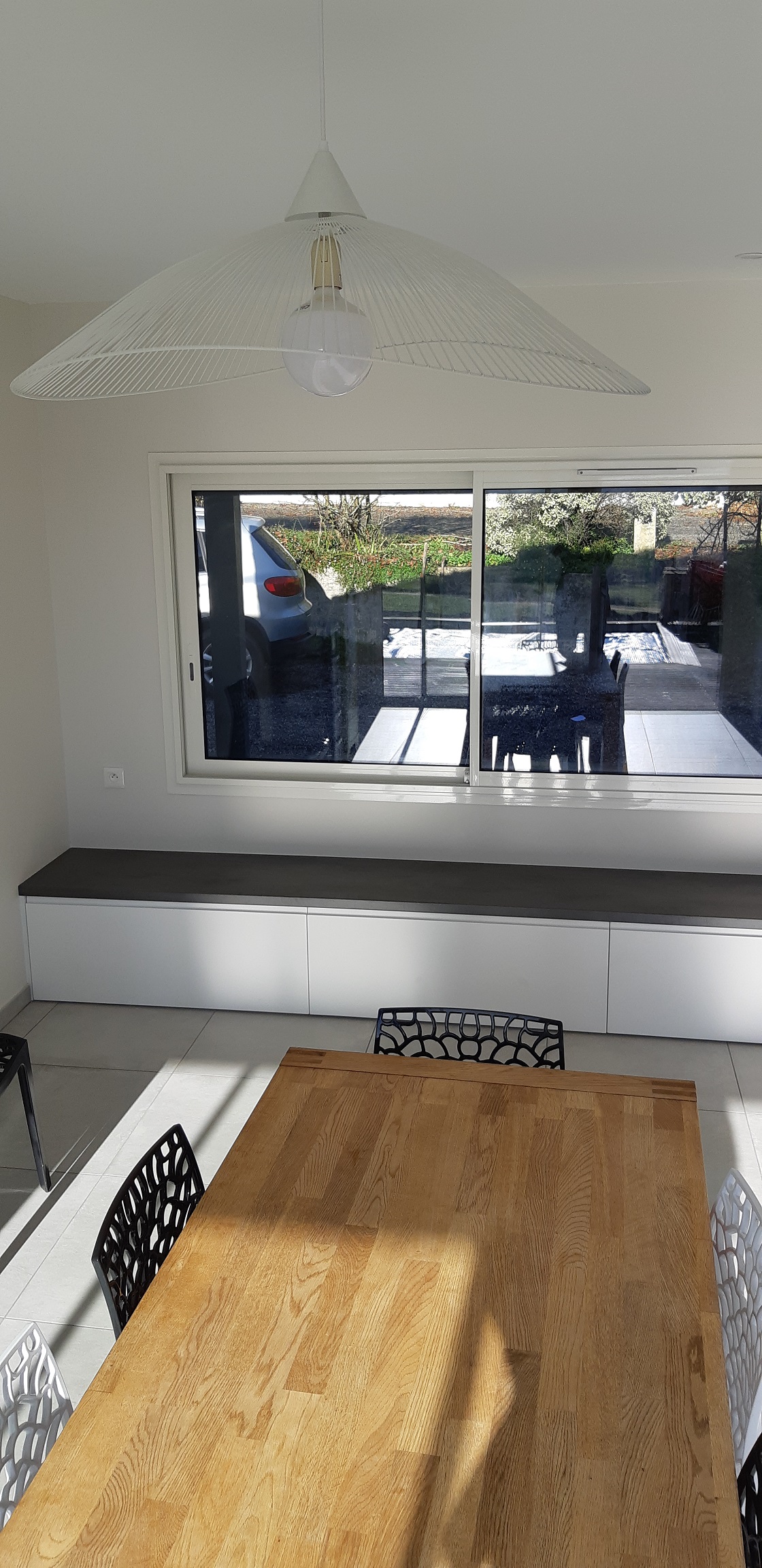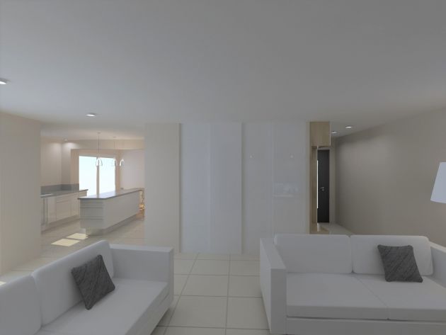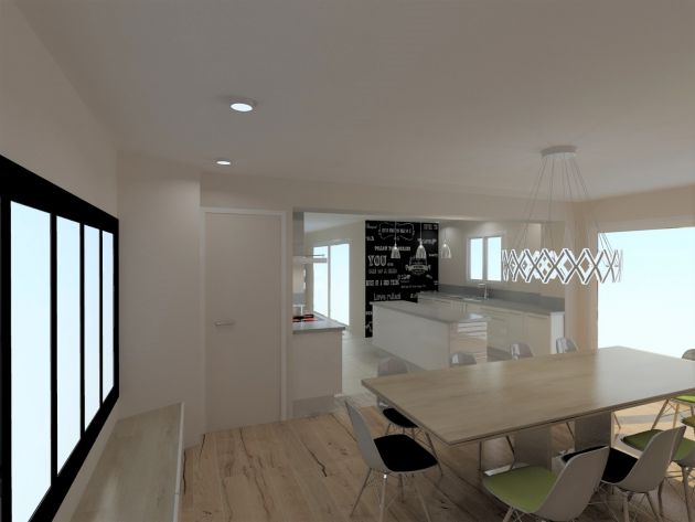 Objectif : Agrandir l’espace de vie et de réception. Aménagement du garage existant en salle à manger avec modifications de façades afin de s’ouvrir vers l’extérieur. Création d’un garage attenant.
