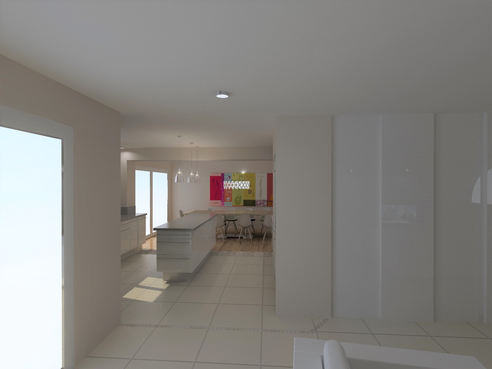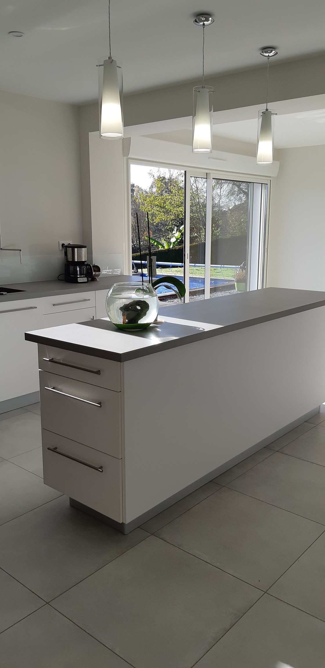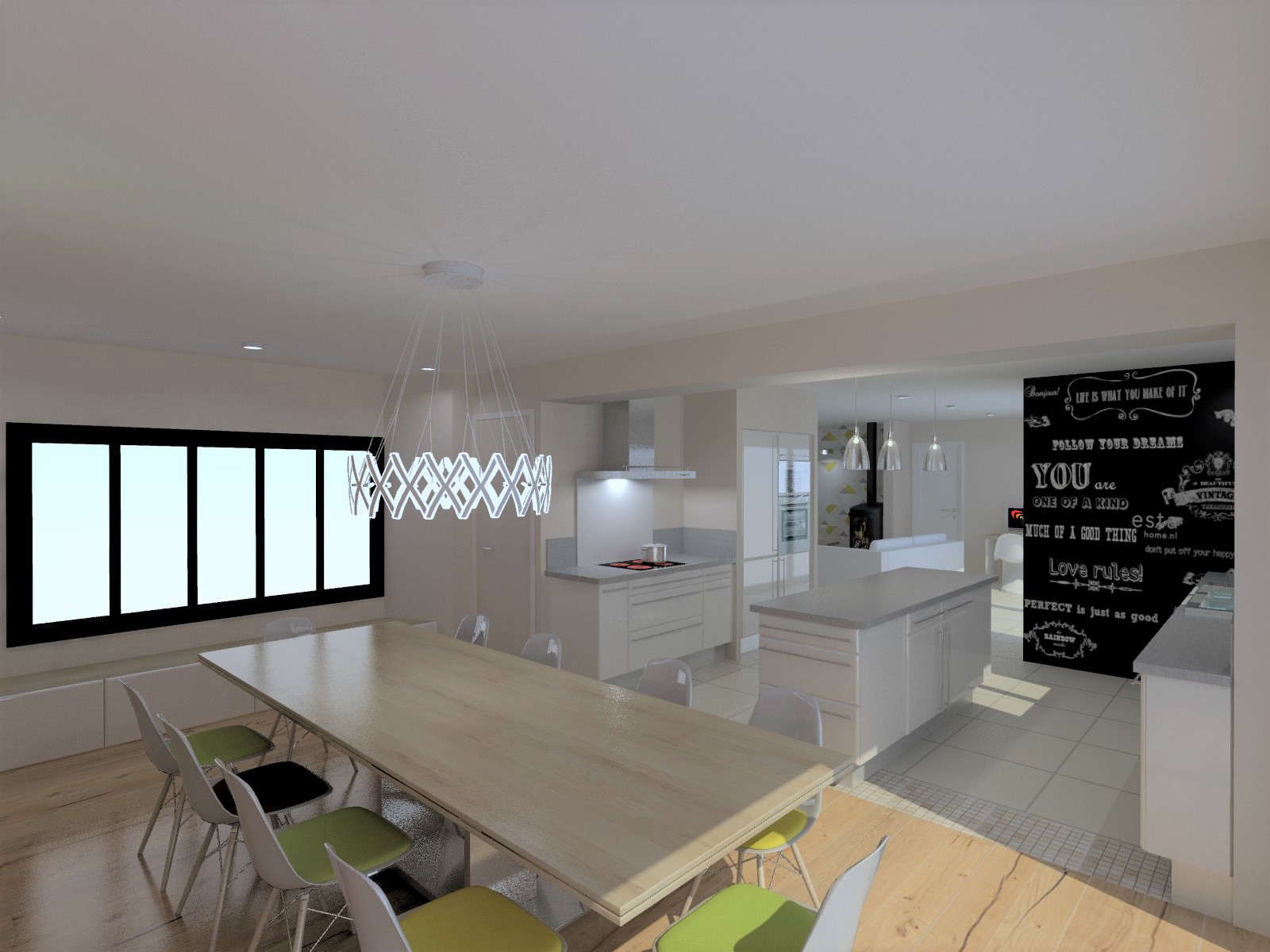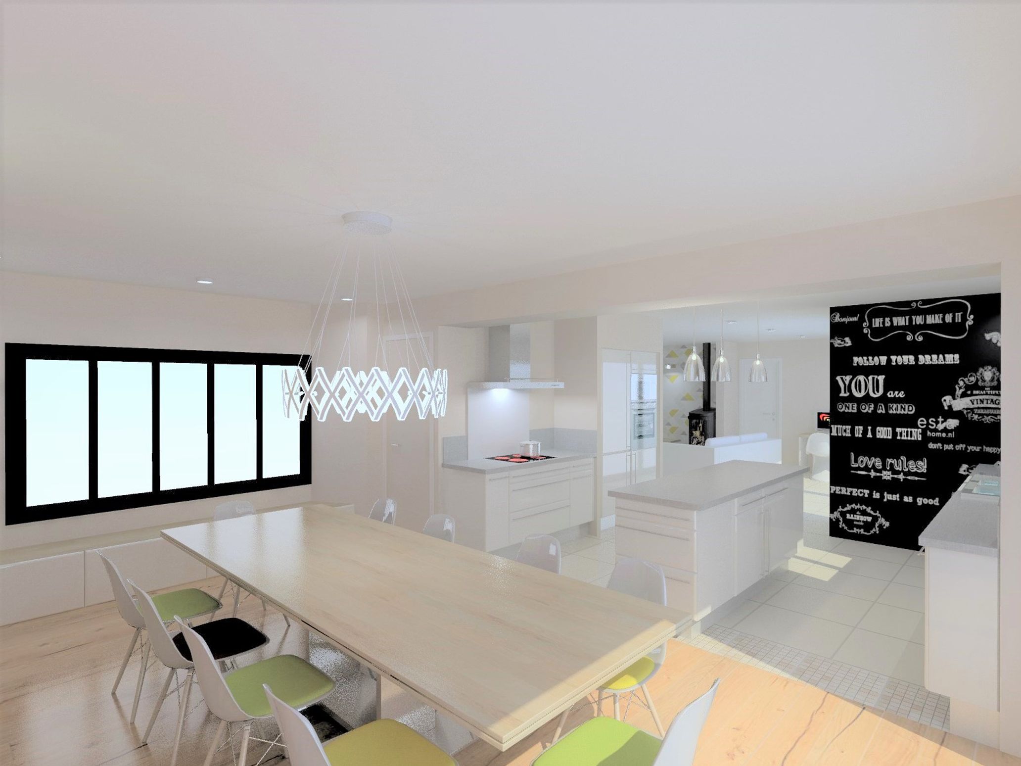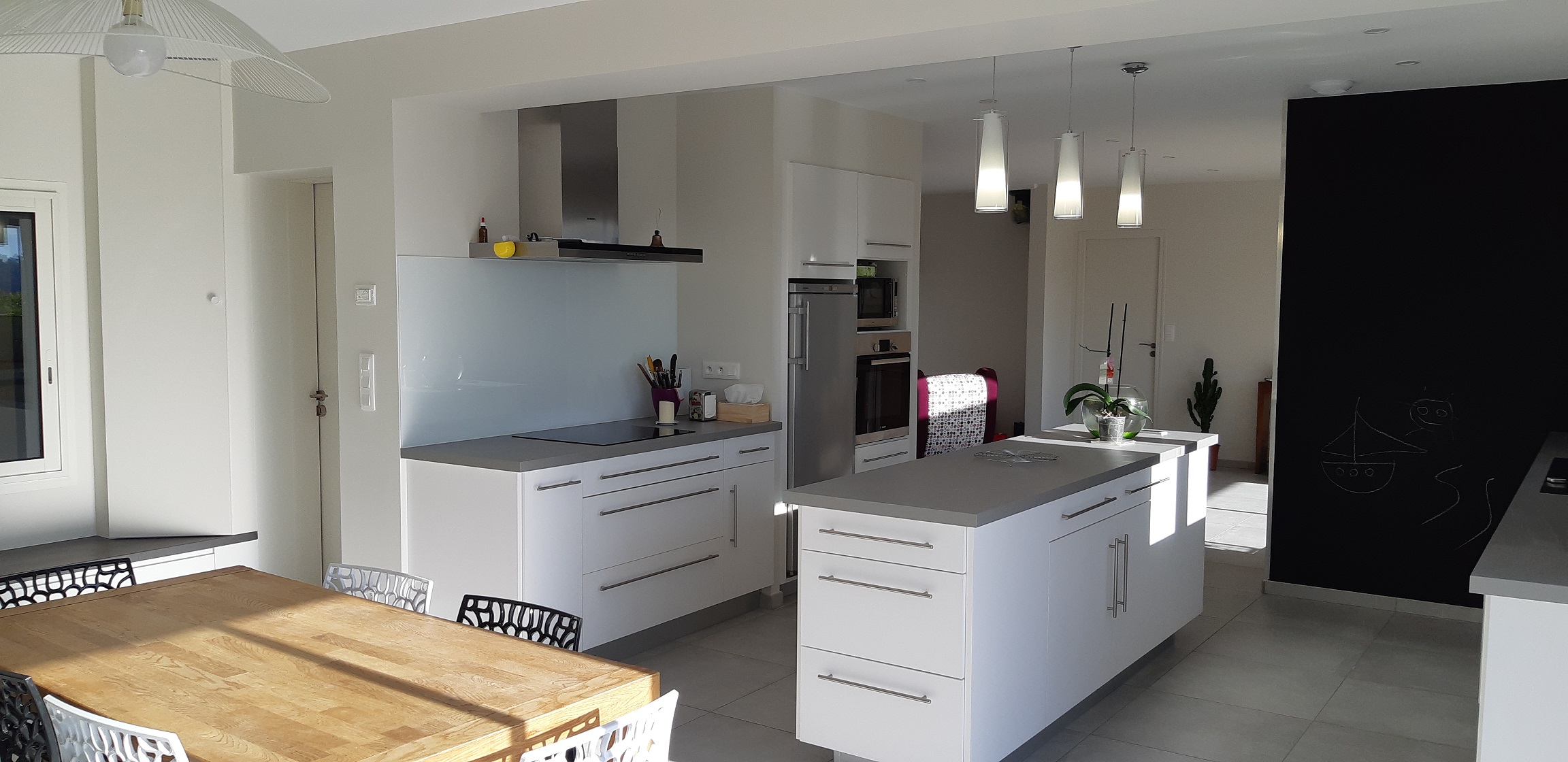 Objectif : Agrandir l’espace de vie et de réception. Aménagement du garage existant en salle à manger avec modifications de façades afin de s’ouvrir vers l’extérieur. Création d’un garage attenant.